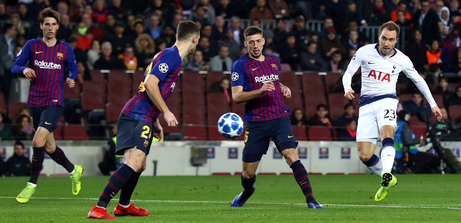 Eriksen's shot was saved and Kane blazed over under pressure before Walker-Peters made a vital block from Coutinho at the other end. The ex-Liverpool man was Barcelona's main threat, hitting the post in similar fashion to the first half just seconds before Lucas' equaliser.