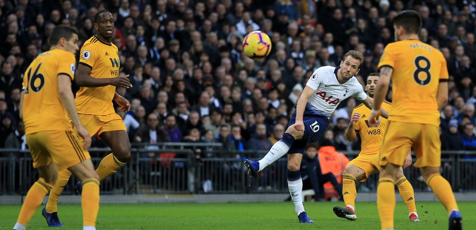 Goals: Spurs – Kane 22; Wolves – Boly 72, Jimenez 83, Costa 87.