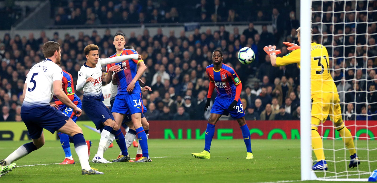 Both sides had sights of goal within the opening few minutes, Dele heading at Vicente Guaita before Jeffrey Schlupp blazed over when perhaps he should have done better. It was mostly one-way traffic during the first period and all heading towards the Palace goal as we went close again on 17 minutes when Kieran Trippier’s pass into the area was met by Eriksen and although he scuffed his shot, it still needed a scrambled save from Guaita with Son waiting to pounce. Eriksen then failed to get on the end of a neat Dele pass, Harry Kane glanced a header which was easy for the Palace keeper and, on 37 minutes, Eriksen played in Son down the right of the area and his fizzing drive was just about kept out by Guaita.