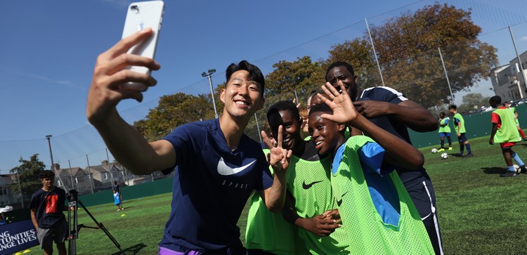 Son helped deliver a series of shooting, passing and tackling drills before showing the children some of his own tricks and skills. After the football session, he also spent time with the youngsters, teaching them some popular Korean words.
