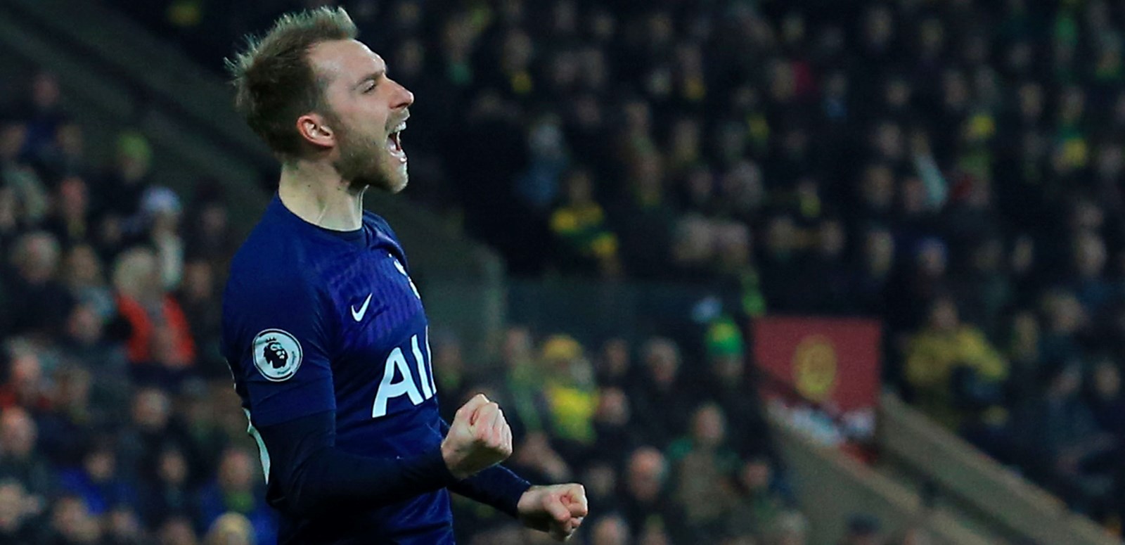 Goals: Norwich - Vrancic 18, Aurier (OG) 61; Spurs - Eriksen 55, Kane 83 (pen).