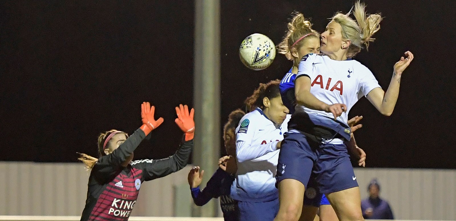 Leicester broke immediately following the miss and Rosie Axten almost gave her side the lead, but a terrific save from Morgan’s fingertips kept Spurs in the hunt for a late winner.