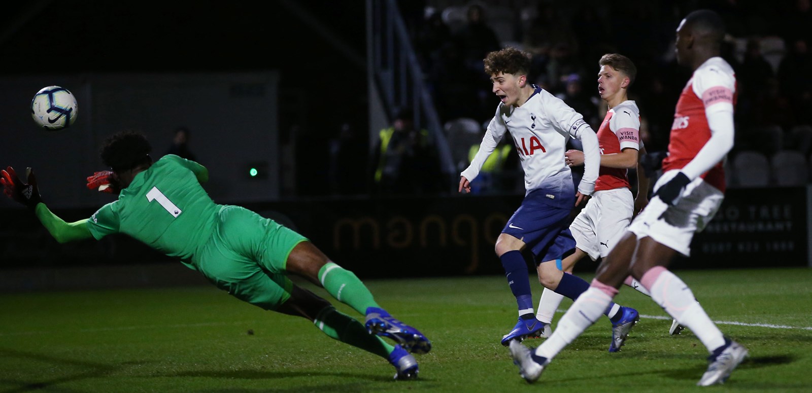 Arsenal's Bukayo Saka - the only player on the pitch with first team appearances under his belt - was kept relatively quiet in the first period and instead it was Xavier Amaechi who posed the home side's biggest threat on the break but when he tried a fierce shot six minutes before the interval, goalkeeper Josh Oluwayemi went flying away to his right to turn it behind for a corner.