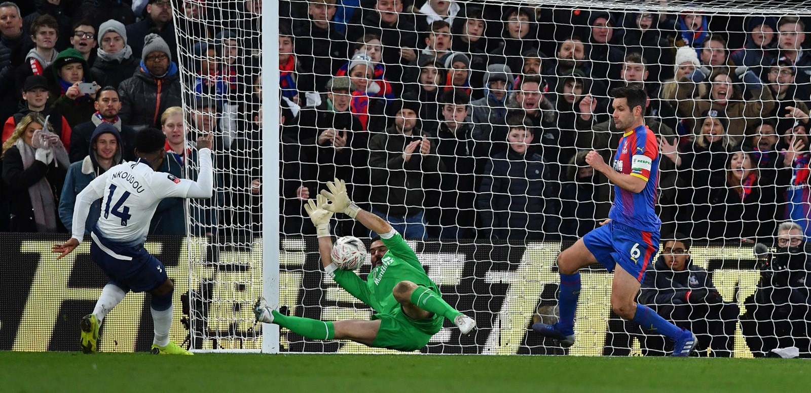 Gazzaniga claimed Patrick van Aanholt's long-range strike well but was powerless to prevent ex-Spur Townsend from converting a penalty to double his side's advantage with 34 minutes played after a cross struck Walker-Peters' flailing arm in the box. Townsend went straight down the middle but refused to celebrate against his boyhood club. He might have had to restrain his emotions again two minutes later as he ran onto van Aanholt's cut-back in the box after a Palace counter, but Gazzaniga denied him a second with a superb stop.