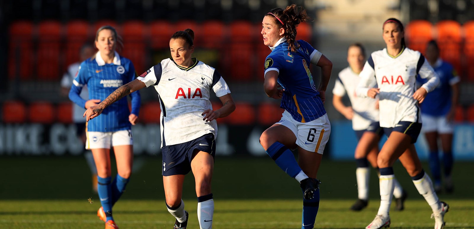 Kerys Harrop opened the scoring with a superb free-kick, before Inessa Kaagman brought Brighton level from 12-yards. Angela Addison finished a brilliant solo move to restore our lead in the second half, before Alex Morgan scored her first goal for the Club from the penalty spot to wrap up the three points in front of our fans.