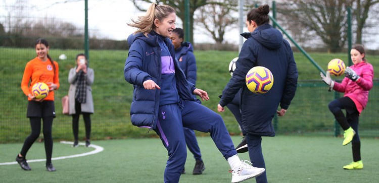 Club captain Jenna Schillaci and forward Jessica Naz this week visited New River Sports Centre on White Hart Lane to get involved in a half-term girls’ football tournament hosted by the Tottenham Hotspur Foundation.