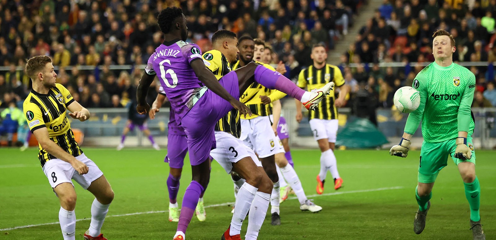 Roared on by a lively partisan crowd, the home side had the better of the early chances, Gollini saving from Nikolai Baden Fredericksen after just three minutes, while Vitesse had penalty appeals waved away after Bryan’s tackle on Wittek inside the area eight minutes later. Lois Openda fired straight at Gollini and Rasmussen was very close to scoring but his flicked header from Wittek’s corner just evaded the far post.