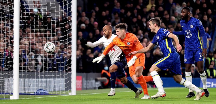 Harry Kane’s 25-yard free-kick forced a save out of Kepa Arrizabalaga early in the second half and the Chelsea keeper denied Giovani Lo Celso late on, but they were our only shots on target and focus now turns to the second leg at Tottenham Hotspur Stadium next Wednesday to see if we can overturn the two-goal deficit.