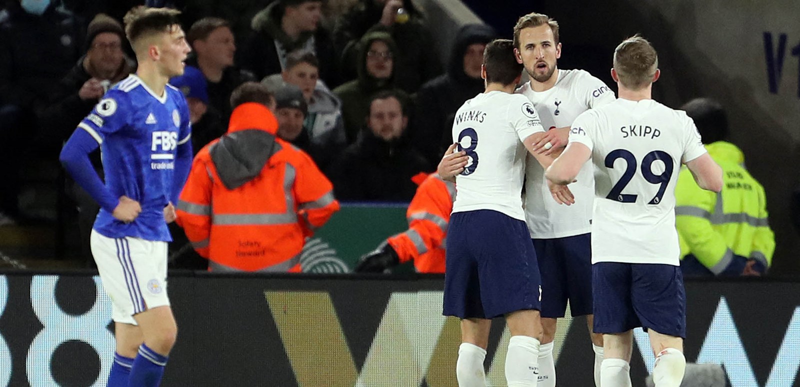 Goals: Leicester – Daka 24, Maddison 75; Spurs – Kane 38, Bergwijn 90+5, 90+7.
