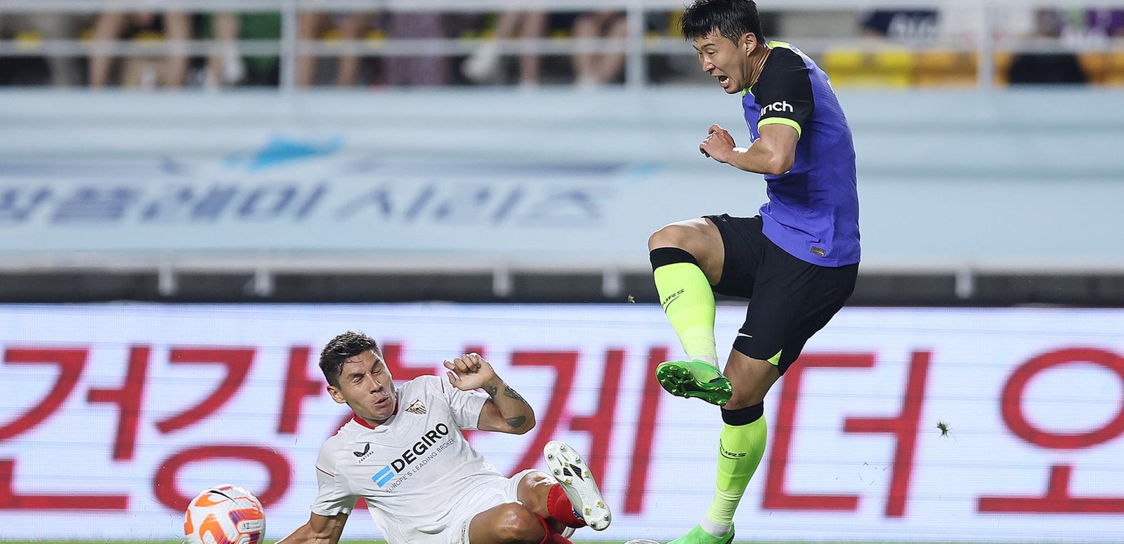 Having scored twice in our 6-3 win over Team K League on Wednesday, the striker was there once more to bury our best chance of the night five minutes into the second half against a tough, well organised Sevilla side. It was the deadly duo at it again, as home hero Heung-Min Son somehow found his partner from the edge of the box after Rodrigo Bentancur won possession.