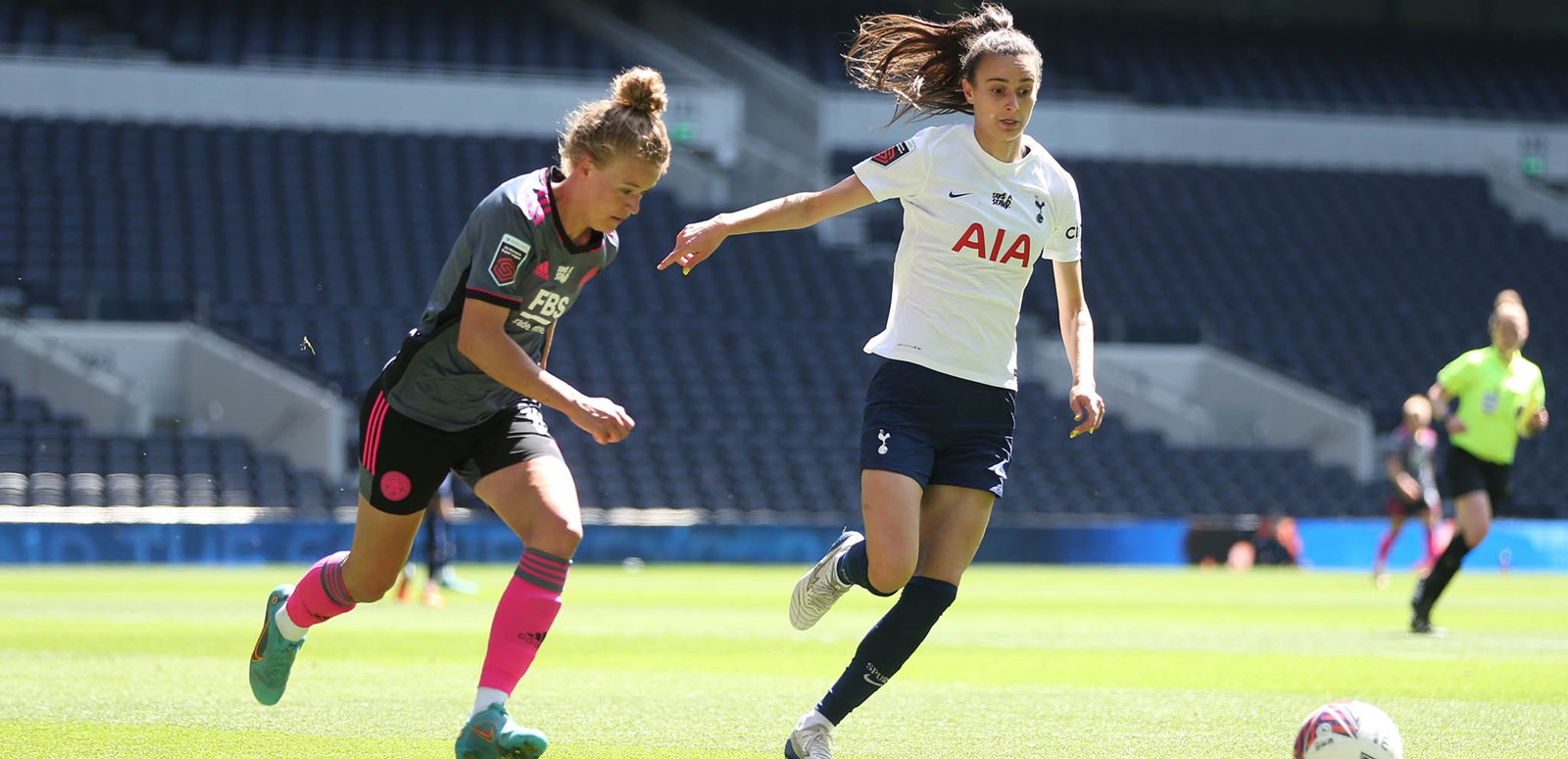 Amid a fantastic atmosphere in the north London sunshine, we put the pressure on from the outset and forced Leicester back, our best chance falling to the superb Neville, who surged through one-on-one against goalkeeper Demi Lambourne, only to be denied by a fine block from the advancing stopper. Lambourne was kept busy for much of the opening half-hour as the likes of Rachel Williams and Neville slid some excellent passes in behind the visitors' high defensive line, but we were unable to capitalise and at the other end, Missy Goodwin fired over the bar from the left angle in a rare chance for her side.