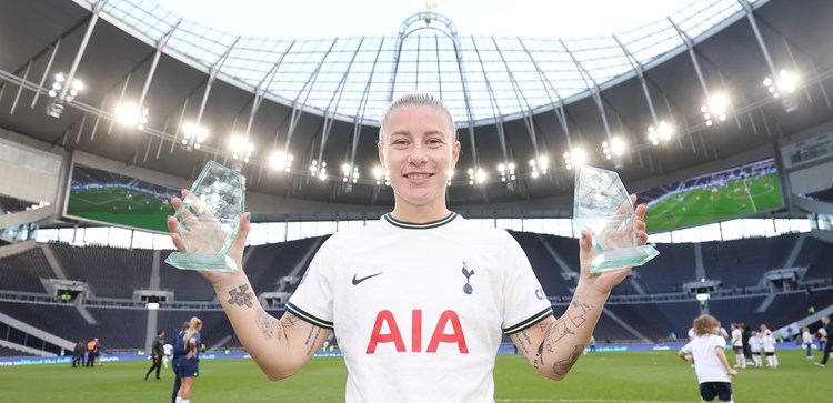 Bethany England won both Player of the Season awards and Ashleigh Neville collected Goal of the Season during our 2022/23 awards presentation after our final home match of the season against Reading on Saturday.
