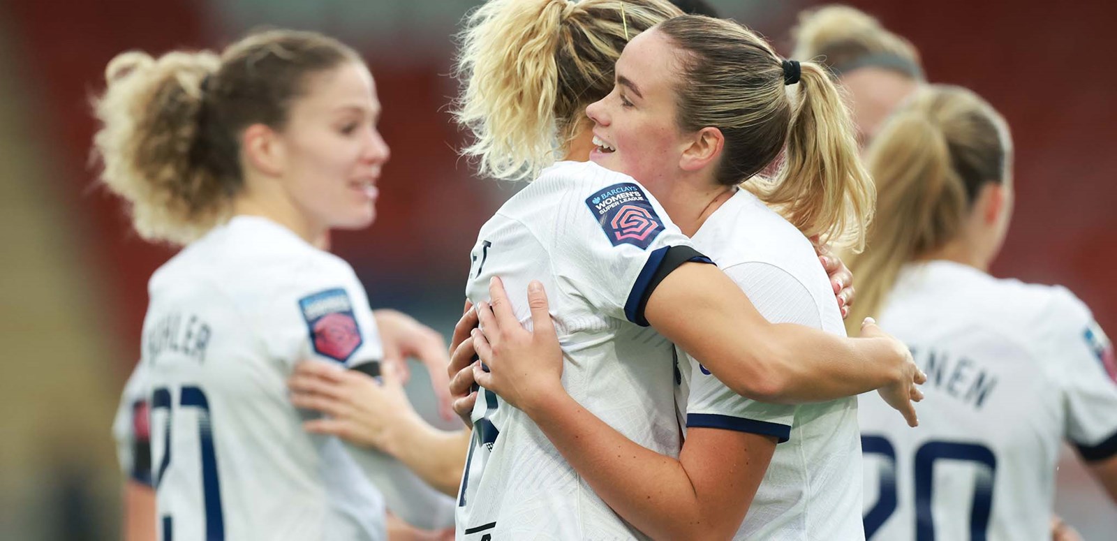 The first half grew into an open affair, Eveliina Summanen lifting a long-range shot onto the roof of the net while Spencer made a good stop on her line to keep out Katja Soeijs' attempt from inside the area at the other end. Martha Thomas - named WSL Player of the Month this week and who had scored in each one of her appearances for us prior to this - pounced on an error at the back but was denied by Brosnan from a tight angle before we took the lead in the 43rd minute as Spence crossed from the right, Brosnan couldn't get to it in the air and Clinton was well-positioned to head home from the middle of the box.