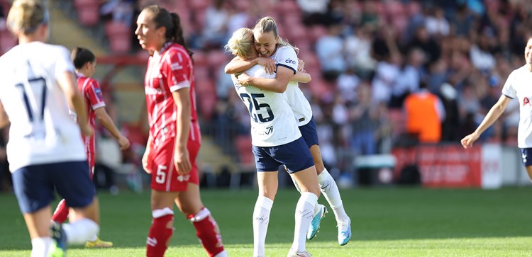 Spurs (4-3-3): Spencer, James, Buhler, Bartrip (c), Neville, Ahtinen (Percival 84), Summanen, Spence (Graham 74), Bizet (Ayane 84), Thomas, Clinton (Naz 60). Substitutes (not used): Votikova, Turner, Ale, Zhang Linyan, Pearse.