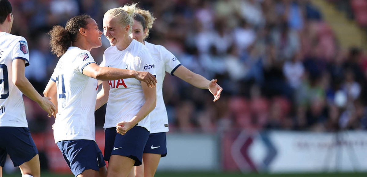 Spurs (4-3-3): Spencer, James, Buhler, Bartrip (c), Neville, Ahtinen (Percival 84), Summanen, Spence (Graham 74), Bizet (Ayane 84), Thomas, Clinton (Naz 60). Substitutes (not used): Votikova, Turner, Ale, Zhang Linyan, Pearse.