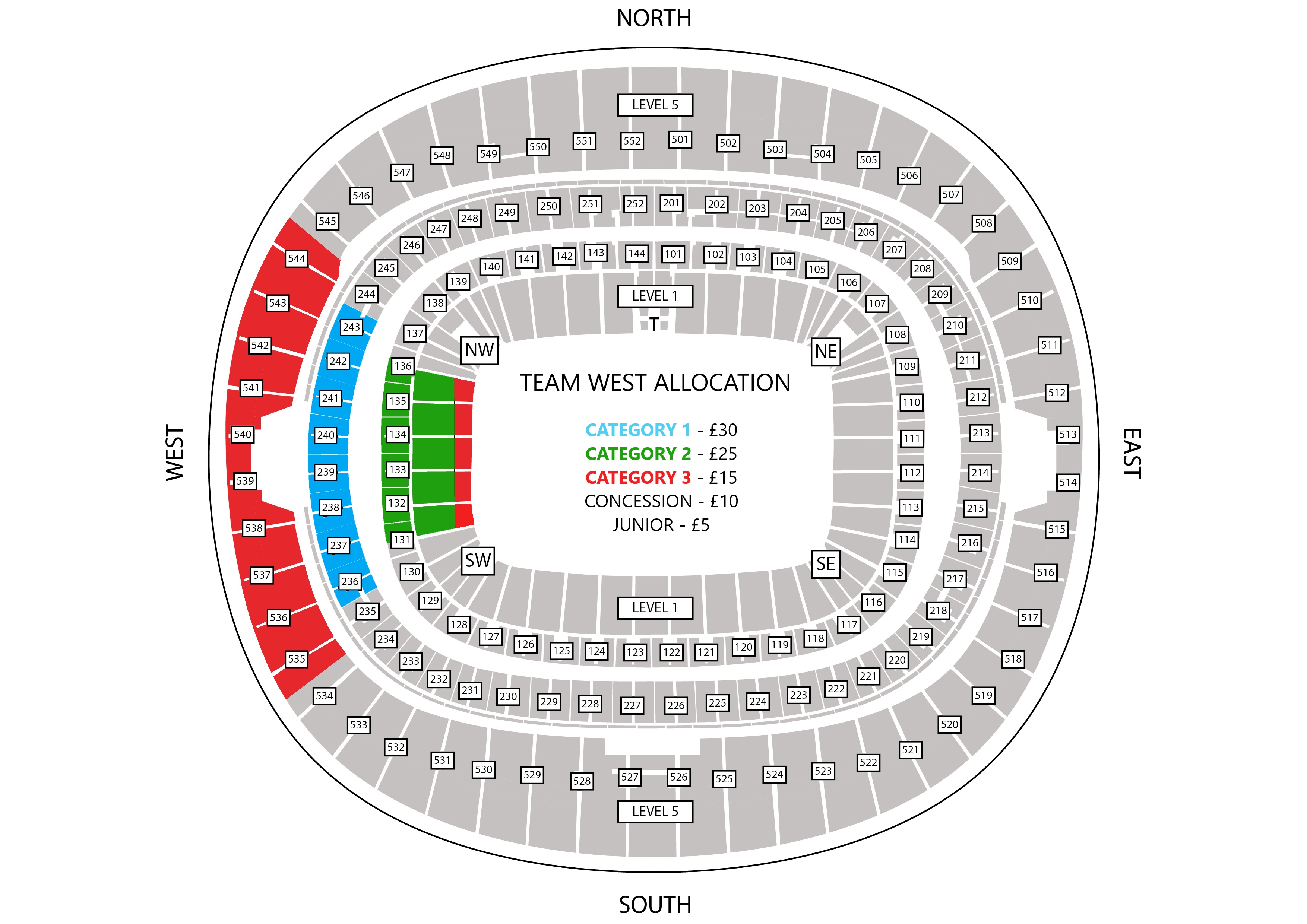 Some of our allocation for this fixture is in a safe standing area. These tickets are located in rows 31-44 in blocks 132-135. Wembley Stadium has advised that supporters must be a minimum of 12 years old to be located in this area. Please do not purchase safe standing tickets if any of your group are under the age of 12.