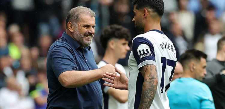 Ange: "Yeah, outstanding. I mean he's a pretty special footballer. Last year when we had that back four up and running, we were a pretty compelling team, but we also know we can't just keep putting them out there and I think with Romero, Micky and Destiny, they're not at peak fitness at the moment and they all sort of missed pre-season. So, we knew sort of this two or three weeks, we saw it last week about the 60-minute mark, they really started to fatigue and we've just got to be really careful with them. If we can get through the international break, then once the midweek games start, we can start rotating a little bit and, you know, because we need them at the peak of their performance because when they're like that, they're outstanding footballers."