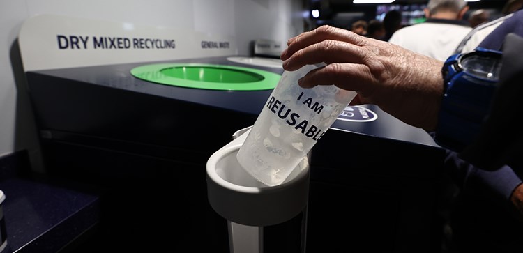 - Dry Mixed Recycling bins are located throughout the stadium concourses, alongside General Waste bins, with fans instructed on how to correctly dispose of their waste.