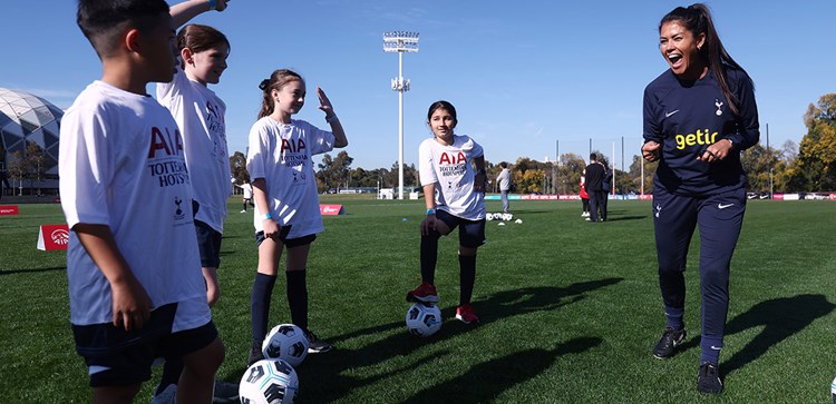 On top of that, Danny and Shannon teamed up with men's first team stars Guglielmo Vicario and Oliver Skipp, alongside players from two of Melbourne's sporting teams - Aussie Rules side Collingwood FC and A-League side Melbourne Victory - at an AIA Community Football Event at the AIA Vitality Centre. Always a presence at the first team's events on Tour, the Global coaches also provided support in our fan parks at Open Training and AAMI Park and our match against Newcastle United at the famous MCG.