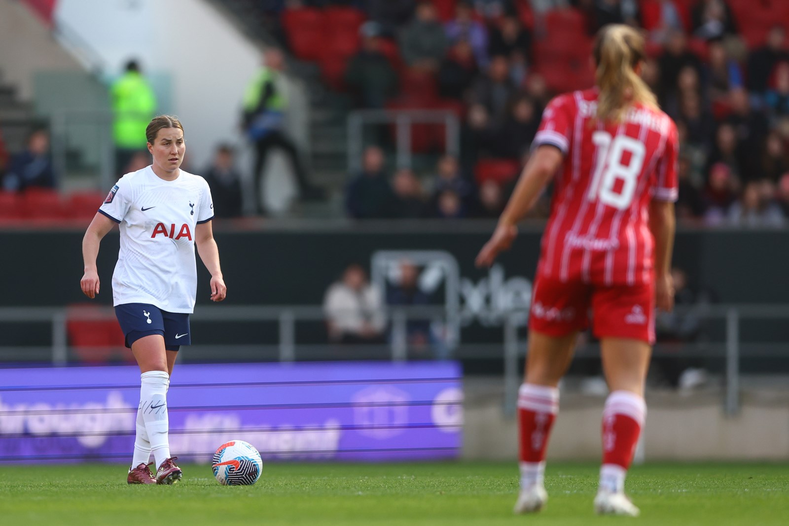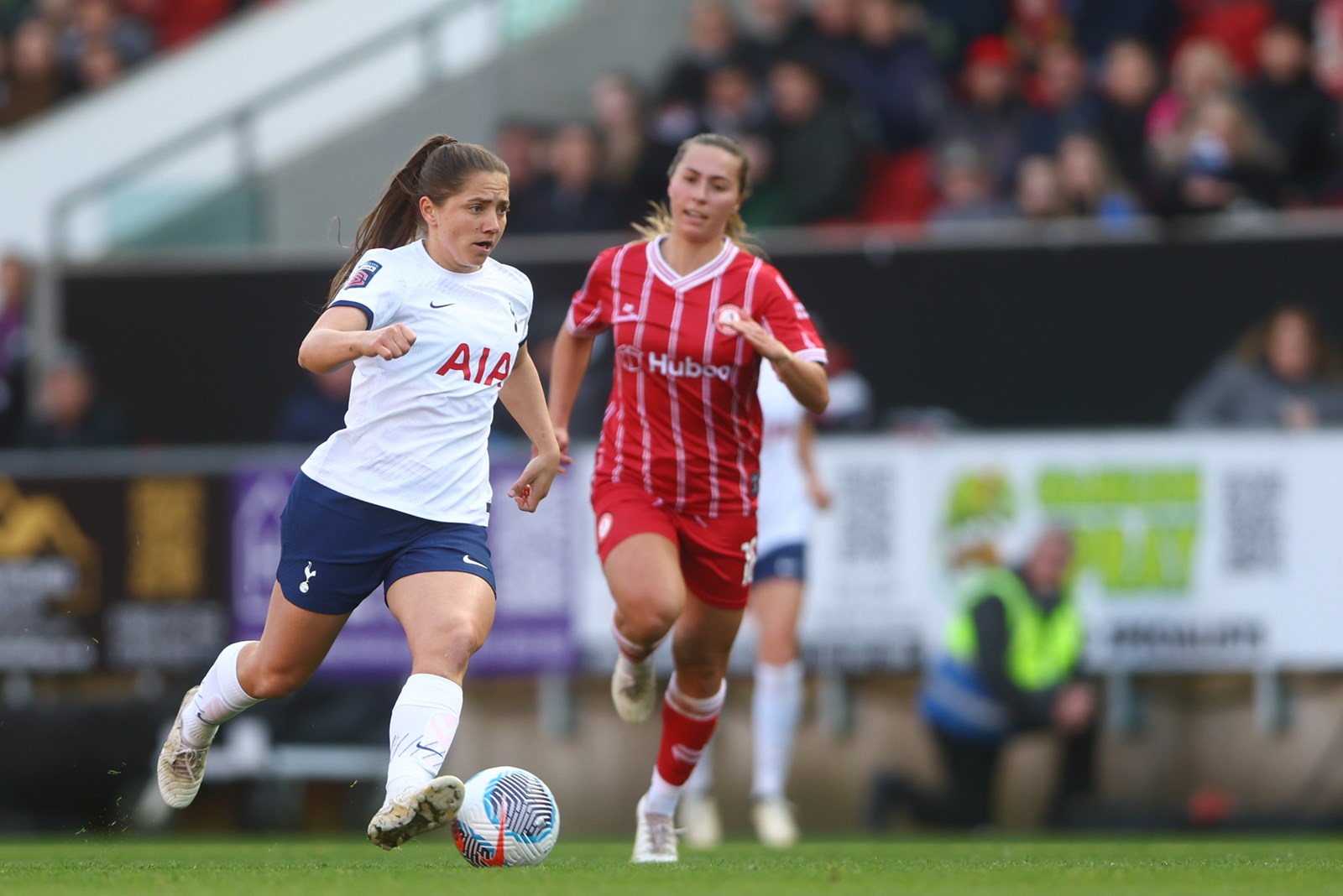 Sarah Stratigakis found some space on the edge of the box as Spencer got down low to her right to deny the midfielder, while Luana Bühler was in the right place at the right time to block Harrison’s shot as the Robins enjoyed a bright spark after the hour mark.