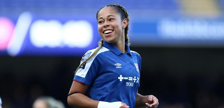 Lenna Gunning-Williams was on the scoresheet for Ipswich Town in their 5-0 victory over Chatham Town as more than 10,000 supporters were in attendance for their first-ever league game at Portman Road