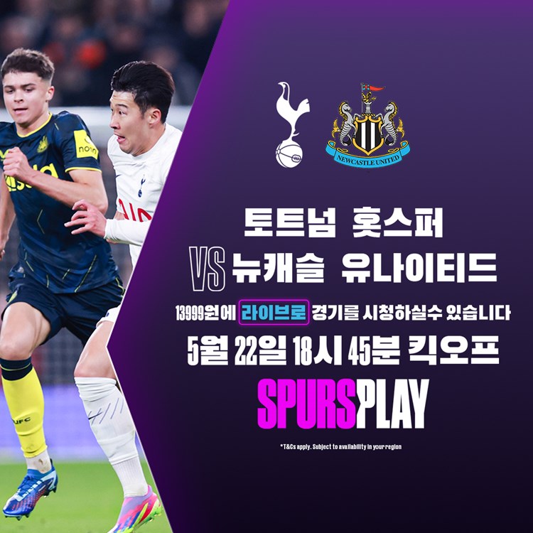 토트넘의 2024년 포스트 시즌 첫 일정이 22일 호주에서 펼쳐진다. 토트넘 공식 어플리이션인 '스퍼스플레이'에서 이 경기를 라이브로 시청할 수 있다. (스퍼스플레이 링크)