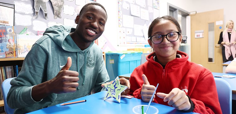 Pape took part in a festive arts workshop at Earlham Primary School, decorating ornaments that will feature on a Christmas Tree at Tottenham Hotspur Stadium, run through our Foundation’s Tottenham Futures programme.