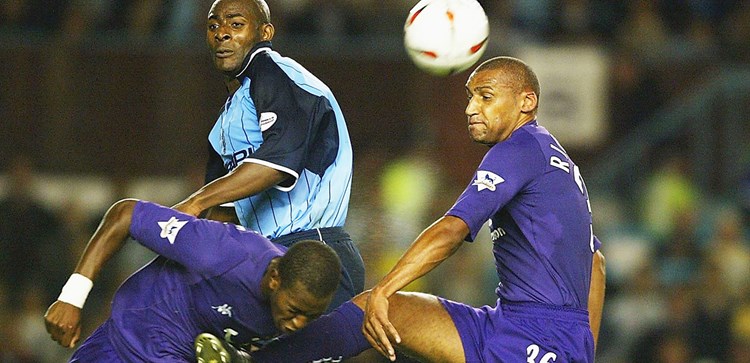 Our photo at the top of the page shows action from our 3-0 win in 2003 as Anthony Gardner and Dean Richards battle with Coventry's Dele Adebola at Highfield Road...