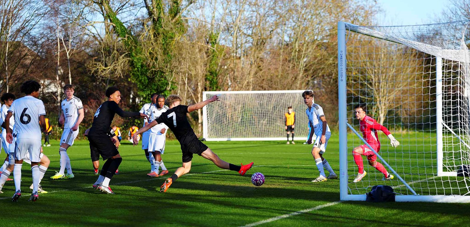 Mid-way through the second half, the striker had his hat-trick, latching onto a ball in from the left by Leon Myrtaj, who had only been on the pitch for a few minutes, and poking low inside the far post. Dair’s long-range shot was brilliantly saved by Irow at full stretch as the Cottagers looked for a late consolation but even with a number of changes made, we stayed in the driving seat as Jamie Carr’s first win as Under-18s Coach arrived in emphatic fashion.