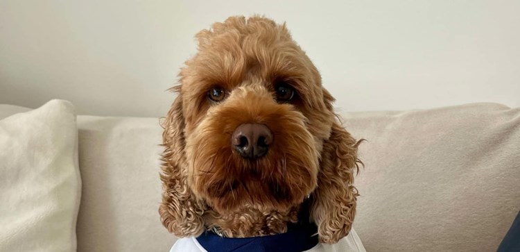 This evening’s ‘Dog of the Match’ is Sabi – a four-year-old cockapoo from Hertfordshire. Sabi loves sunbathing, shopping trips to Battersea and, of course, cheering on the team alongside his mum, Kim, and sisters Georgia and Olivia.