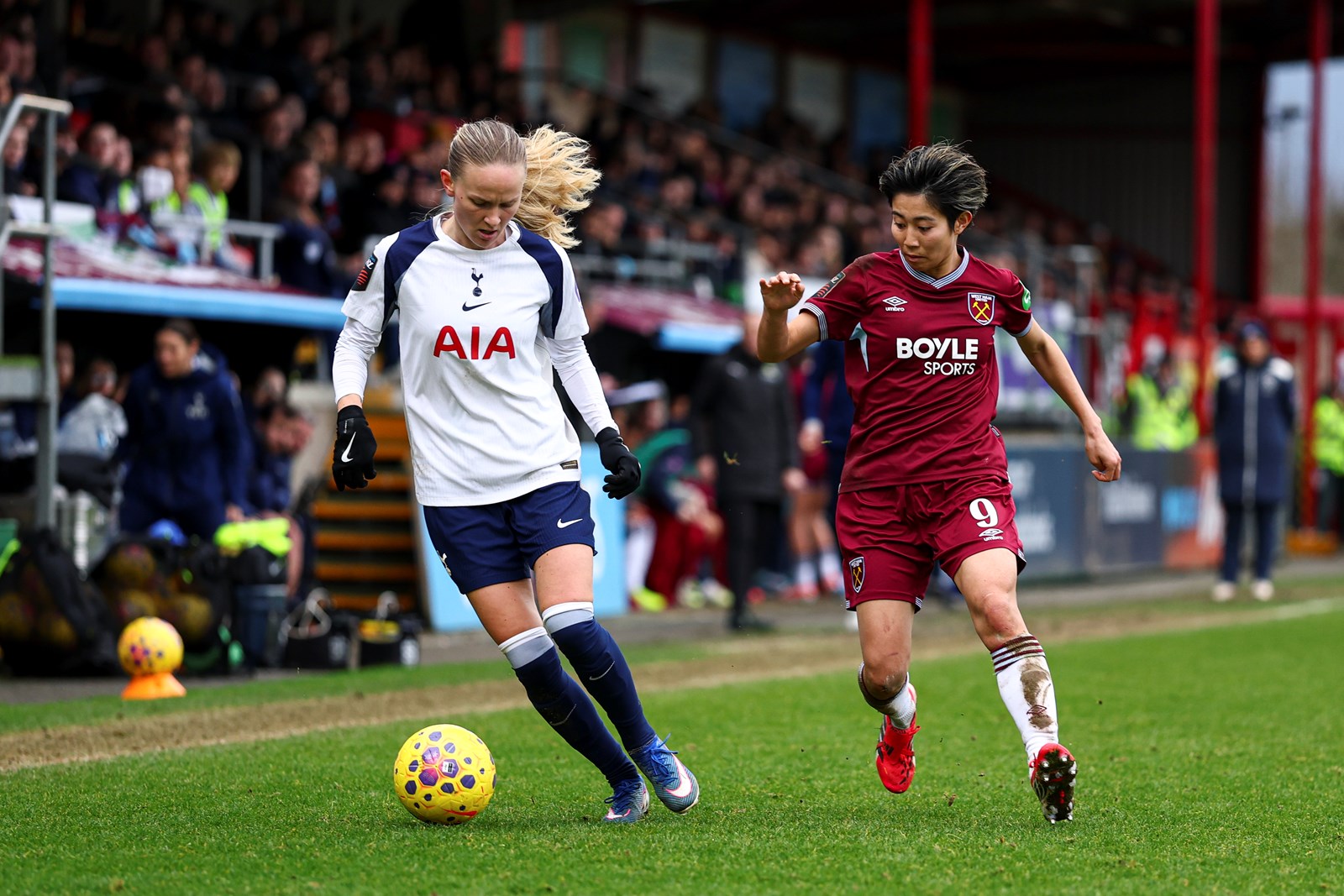 After just 43 seconds on the clock in east London, we carved out our first chance as Bethany England’s pull-back found Signe Gaupset on the right of the six-yard box but she lifted the ball over the bar. Our captain then sent a half-volley from the edge of the area narrowly wide but, despite the play being all in our opponents’ half in the first 10 minutes, it was the hosts who broke the deadlock, arguably against the run of play.