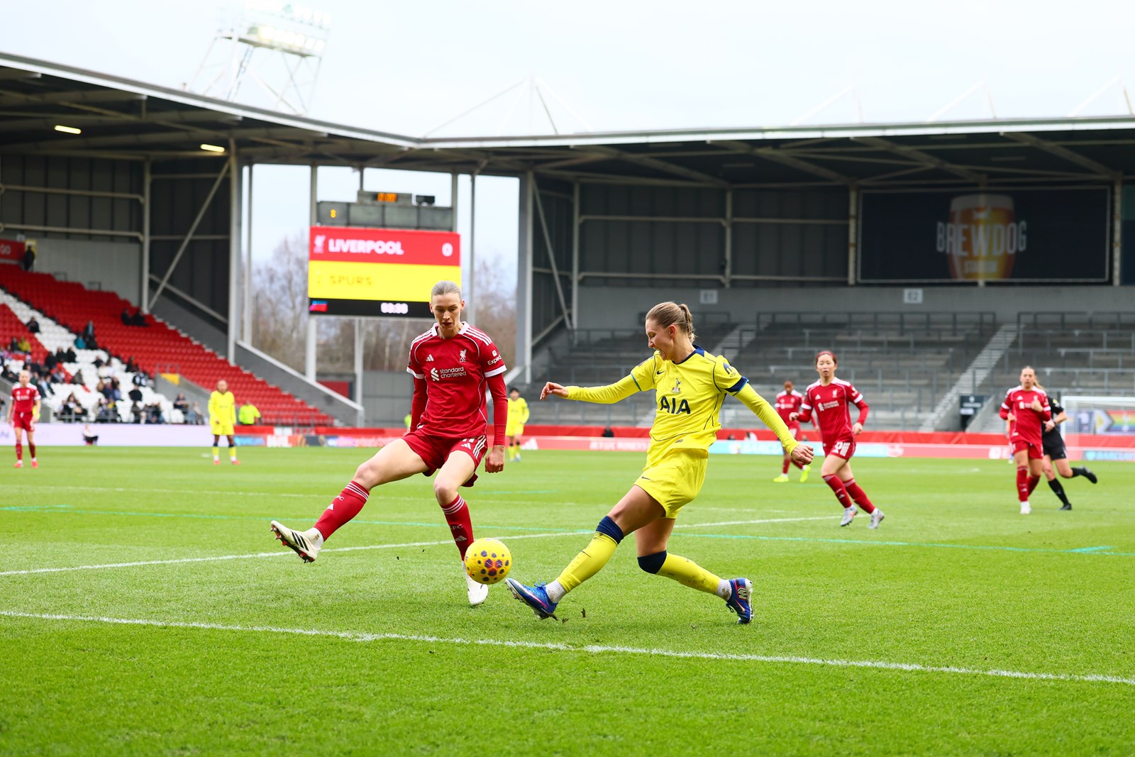 Despite having not picked up a win in the WSL prior to this game, the hosts started on the front foot in the early stages and, after just two minutes, struck the woodwork when Alice Bergstrom’s curling effort from the edge of the box crashed against the crossbar. Lize Kop produced a routine save from Aurelie Csillag’s header before Ceri Holland sliced a shot wide from the left-hand inside of the box as Liverpool carved out plenty of opportunities in the opening 10 minutes.