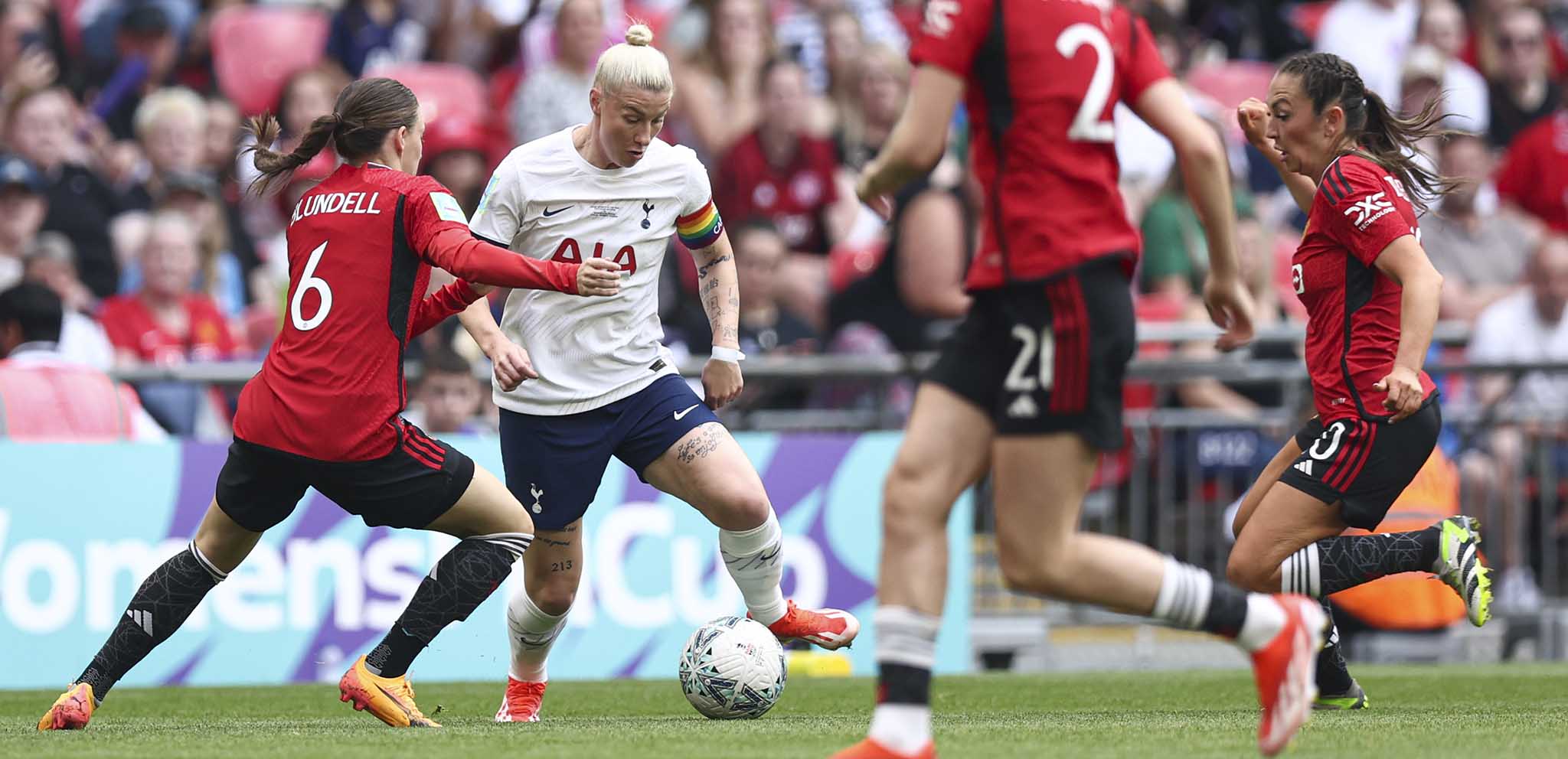 United added a fourth on 74 minutes with a second for Garcia after Lisa Naalsund teed up the Spaniard inside the box for her to fire past Spencer. We continued to fight until the end, Drew Spence seeing two efforts from the edge of the box blocked but, while it came to a disappointing end at the national stadium, our run to the final shows the substantial progress that has been made by Vilahamn and his coaching staff in such a short period of time.