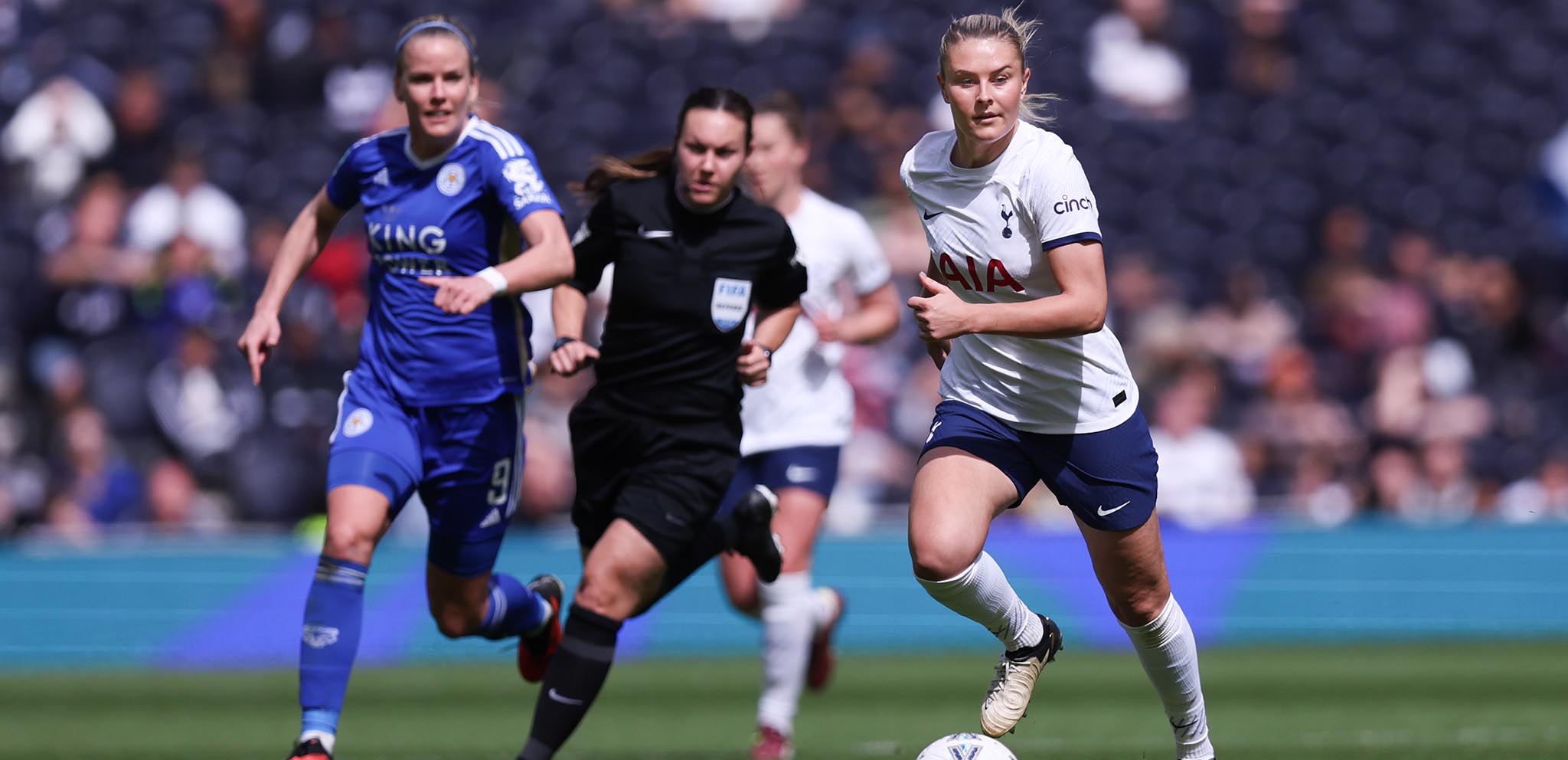 Yellow cards: Spurs – James-Turner 19, Summanen 64; Leicester – Momiki 32, Green 43, Bott 90+6.
