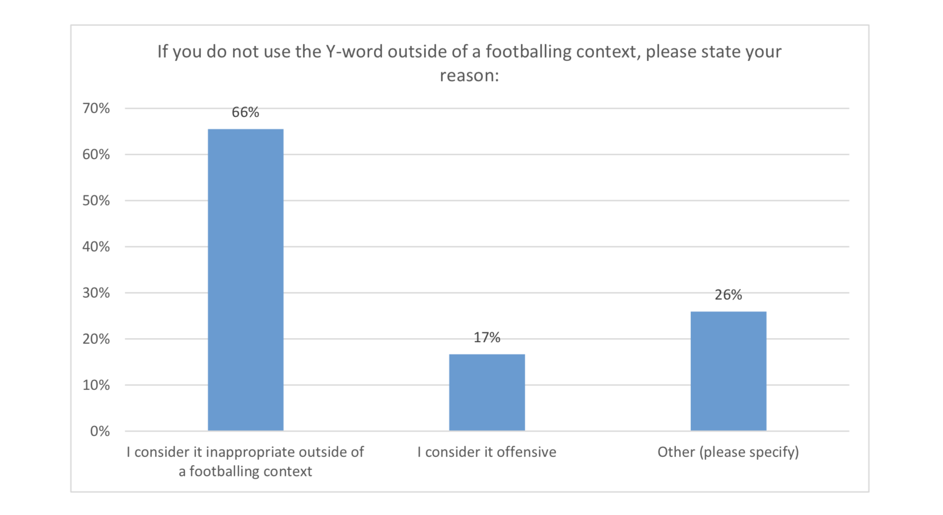 For many of our supporters, context has always been key in justifying their use of the Y-word and that pattern appears to continue in the latest research with only 12% of respondents answering that they use the term outside of a footballing context.