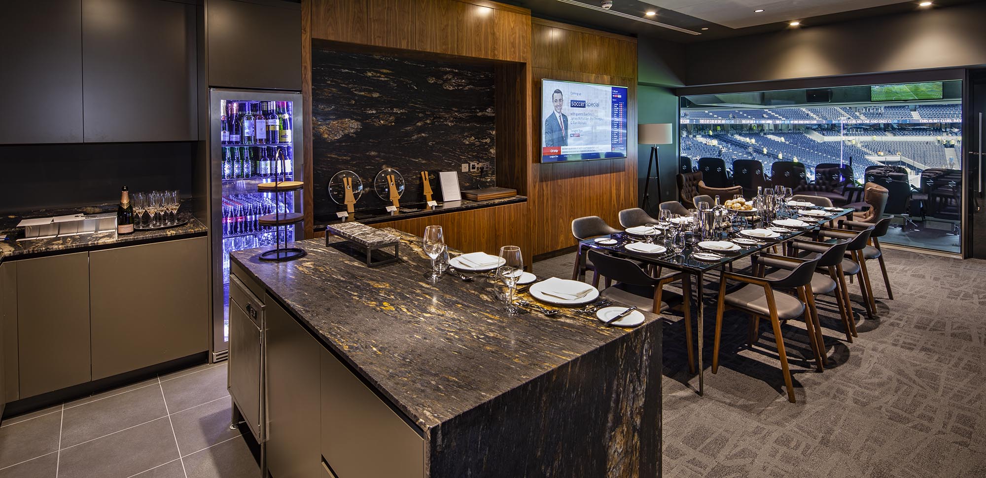 Our flagship Suites On Four are the pinnacle of luxury at Tottenham Hotspur Stadium. These spacious suites are a world away from a traditional corporate box, and feel more like your own private Members area.