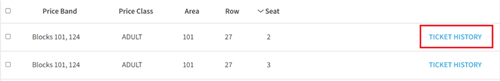To view ticket history and see where tickets have been sent select ‘Ticket History’ next to the seat details.