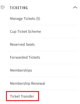 3. Click “Ticketing” to expand the menu and select “Ticket Transfer”