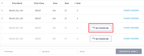 8. Once a ticket has been transferred, should you want to un-transfer the seat select “Withdraw”